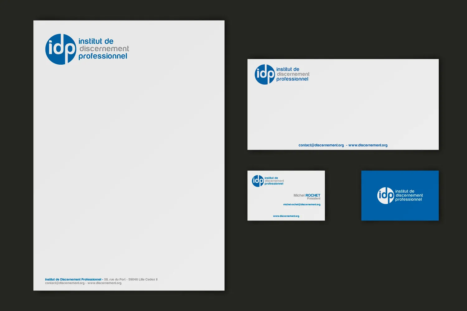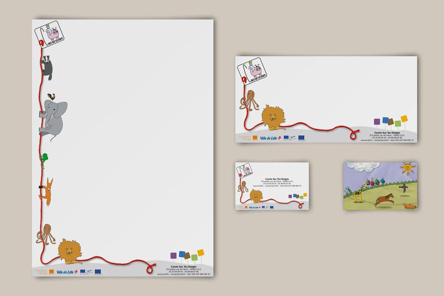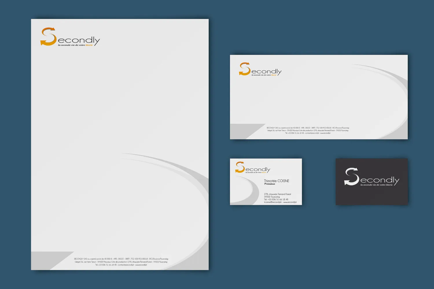 Le set de correspondance forme un ensemble harmonieux dédié à vos communications écrites. L’en-tête de lettre, la carte de correspondance et la carte de visite prolongent l’identité de votre marque dans chaque échange formel. Sobriété, clarté et élégance en sont les maîtres mots.