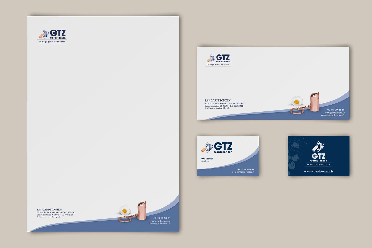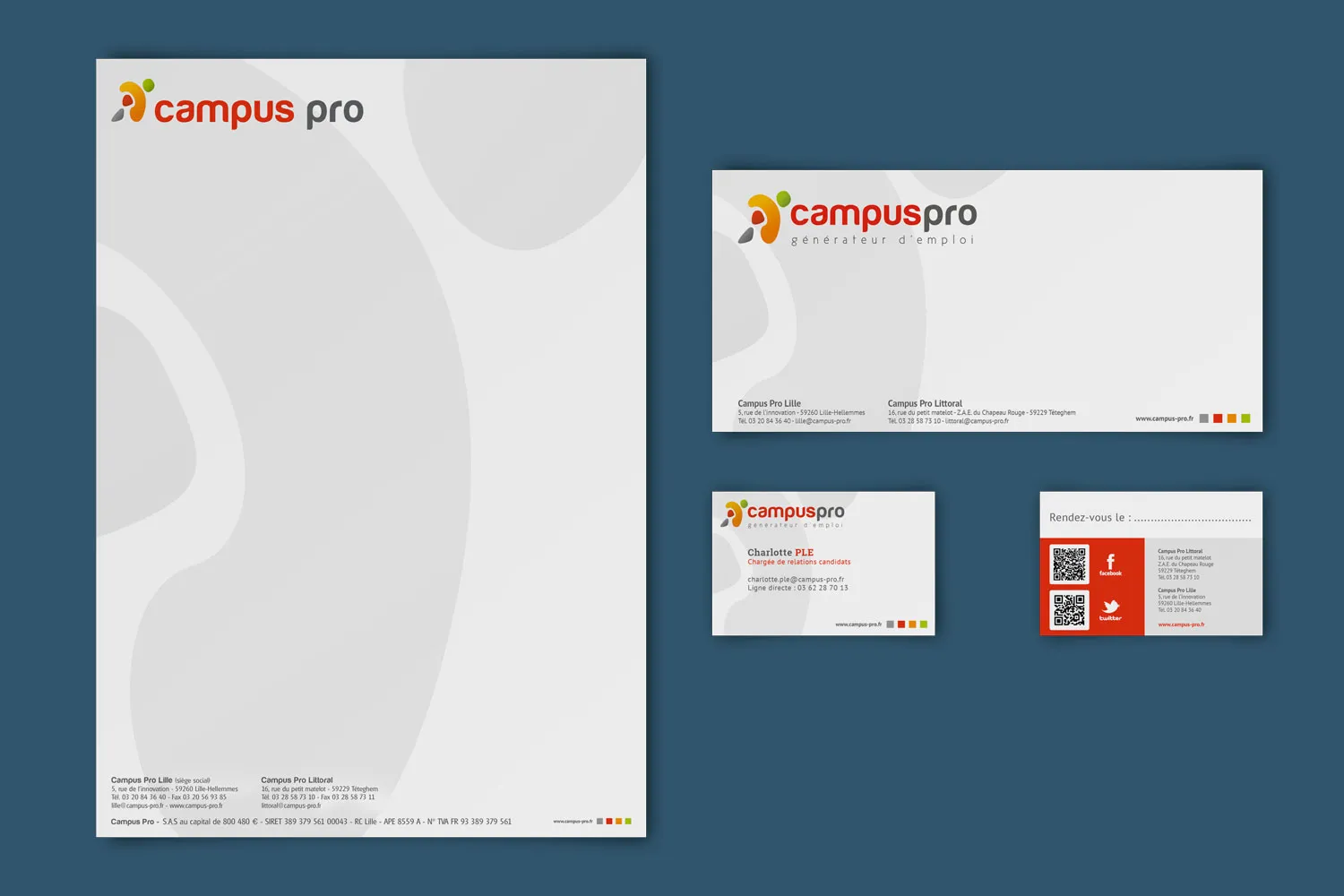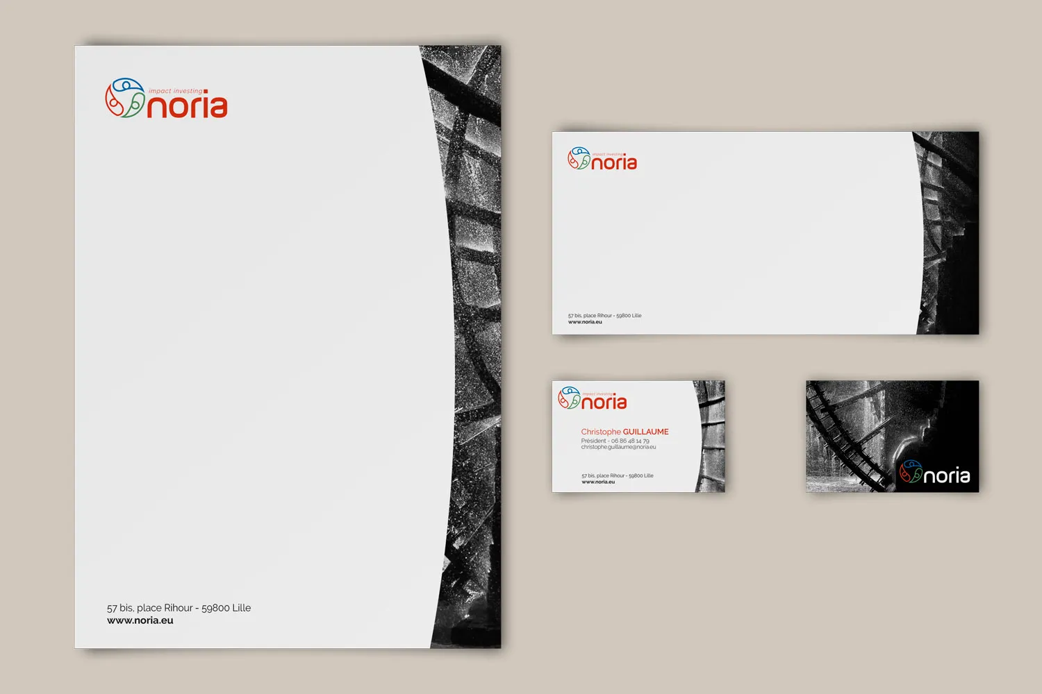 Le set de correspondance forme un ensemble harmonieux dédié à vos communications écrites. L’en-tête de lettre, la carte de correspondance et la carte de visite prolongent l’identité de votre marque dans chaque échange formel. Sobriété, clarté et élégance en sont les maîtres mots.