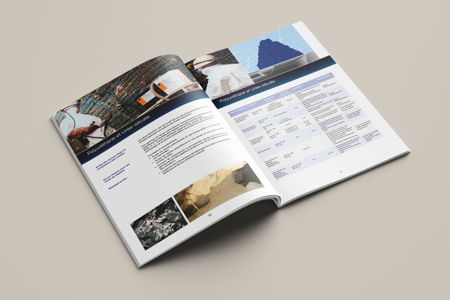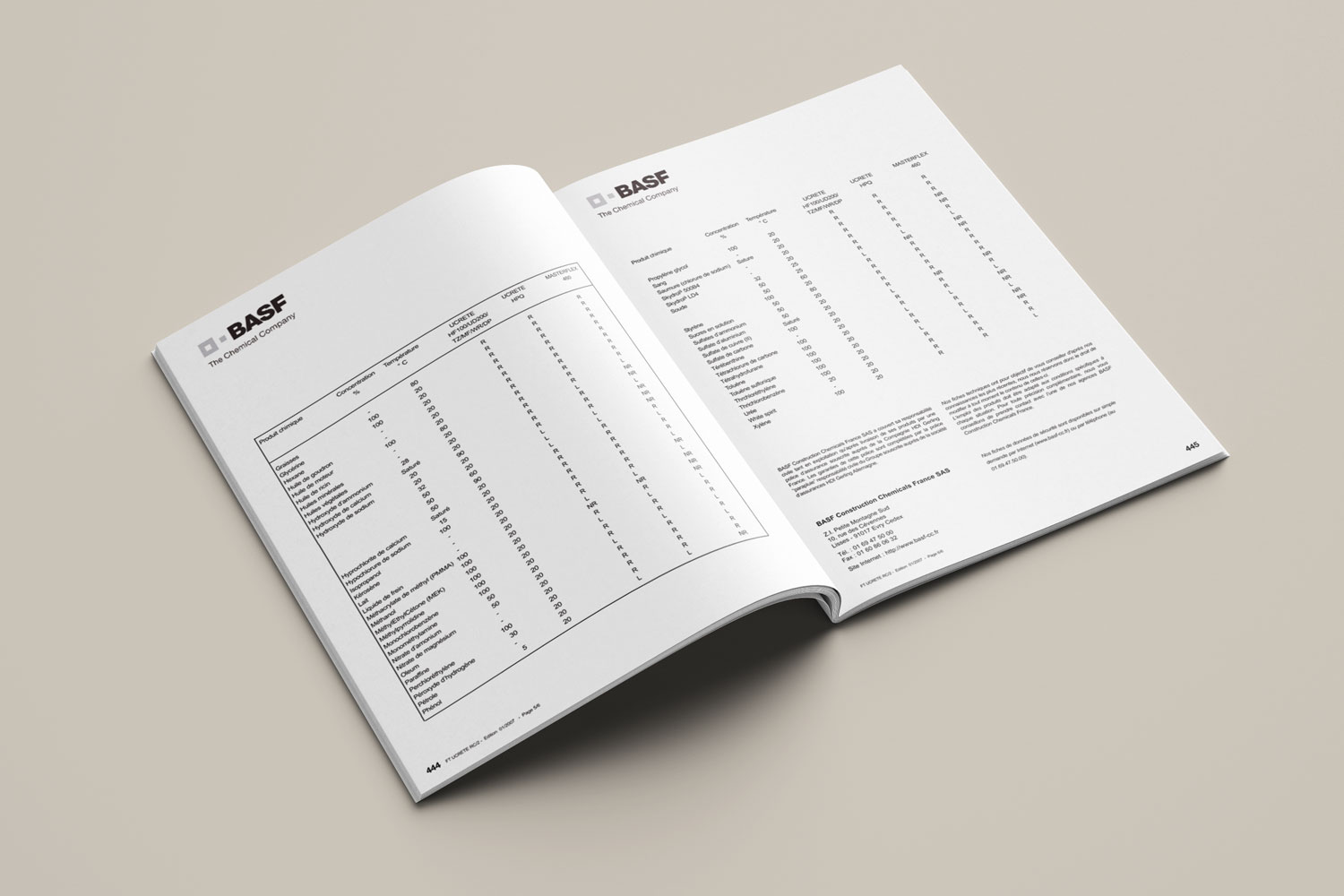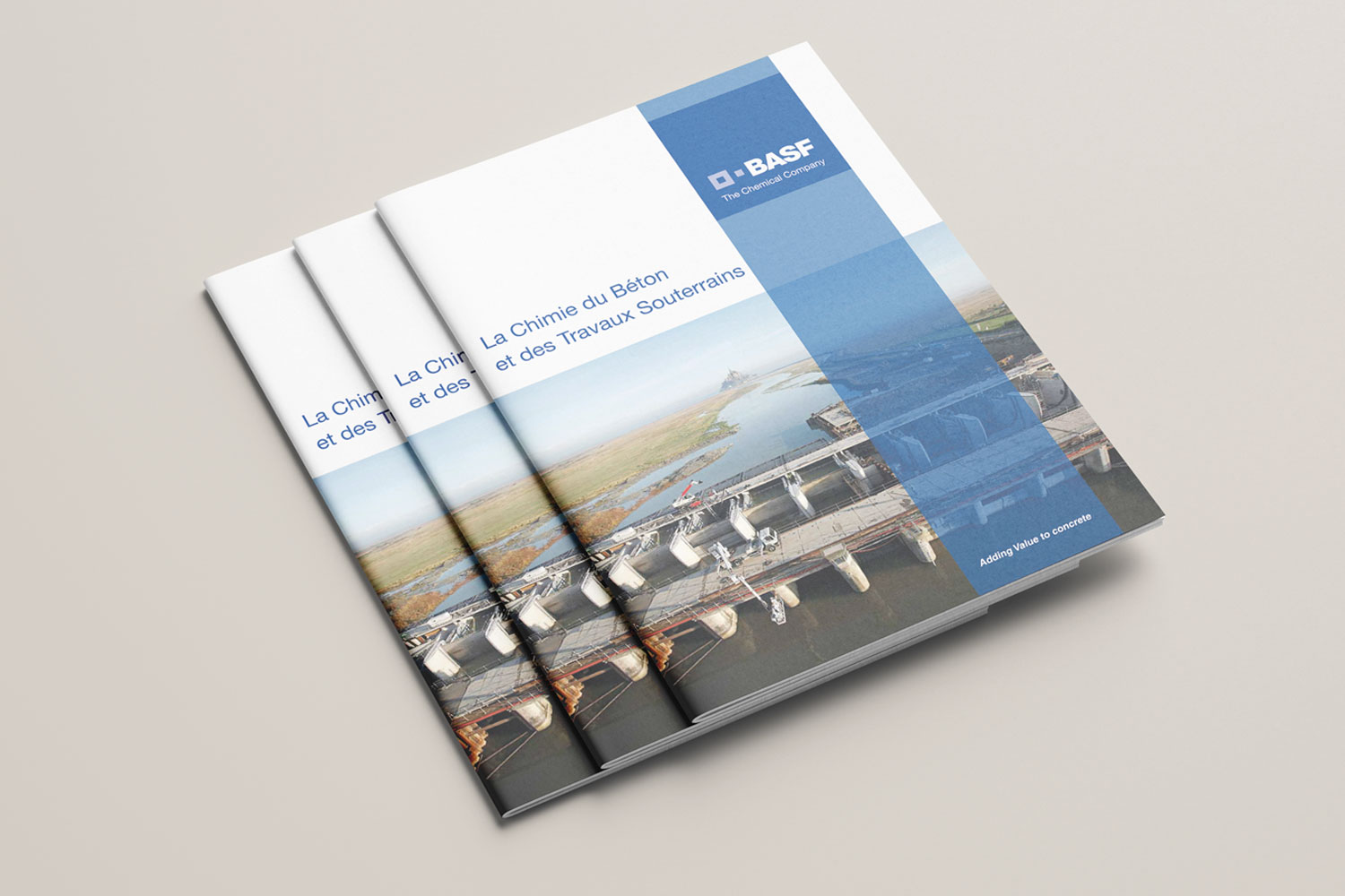 Modification de la brochure ‘’Chimie du Béton et de Travaux Souterrains’’ BASF : modification des tableaux, remplacement de visuels, retouche de visuels, modification de texte dans du dessin vectoriel. Éléments mis à disposition : dossier complet comprenant les fichiers natifs au format In Design, un dossier image et un dossier police.