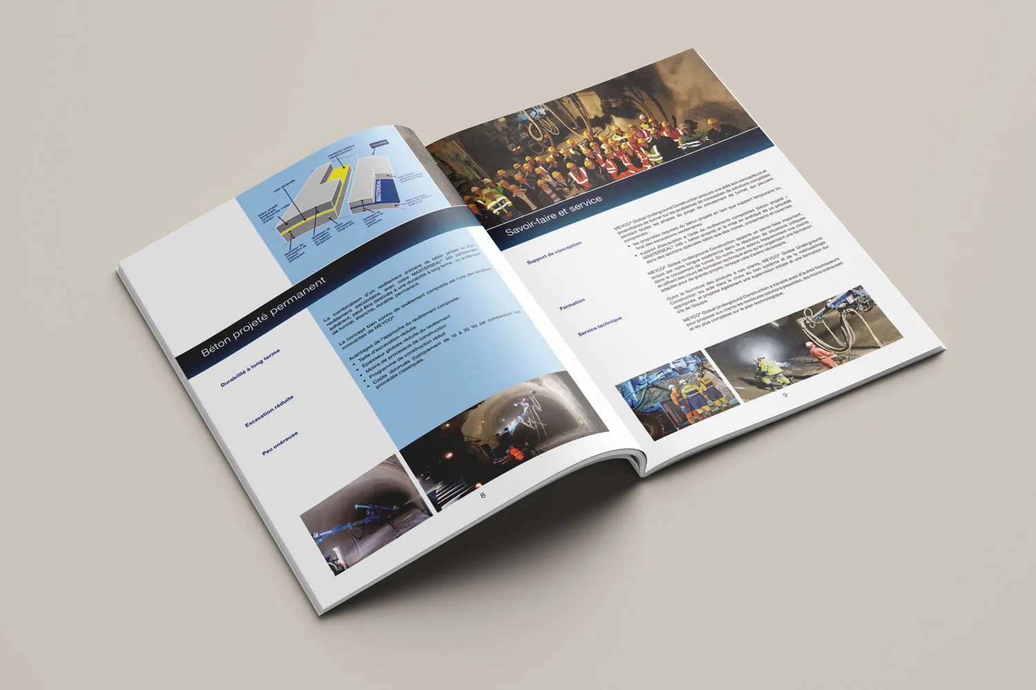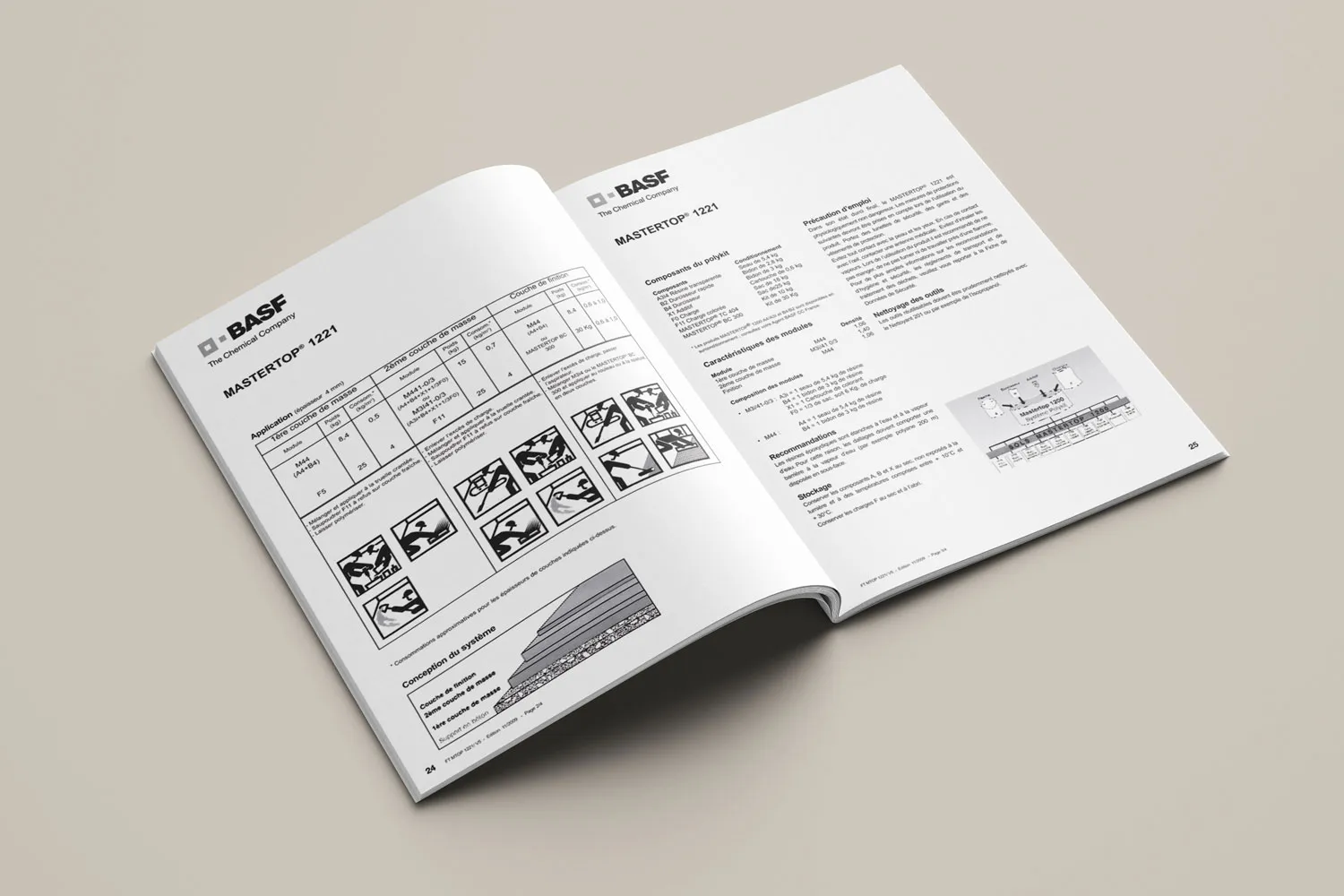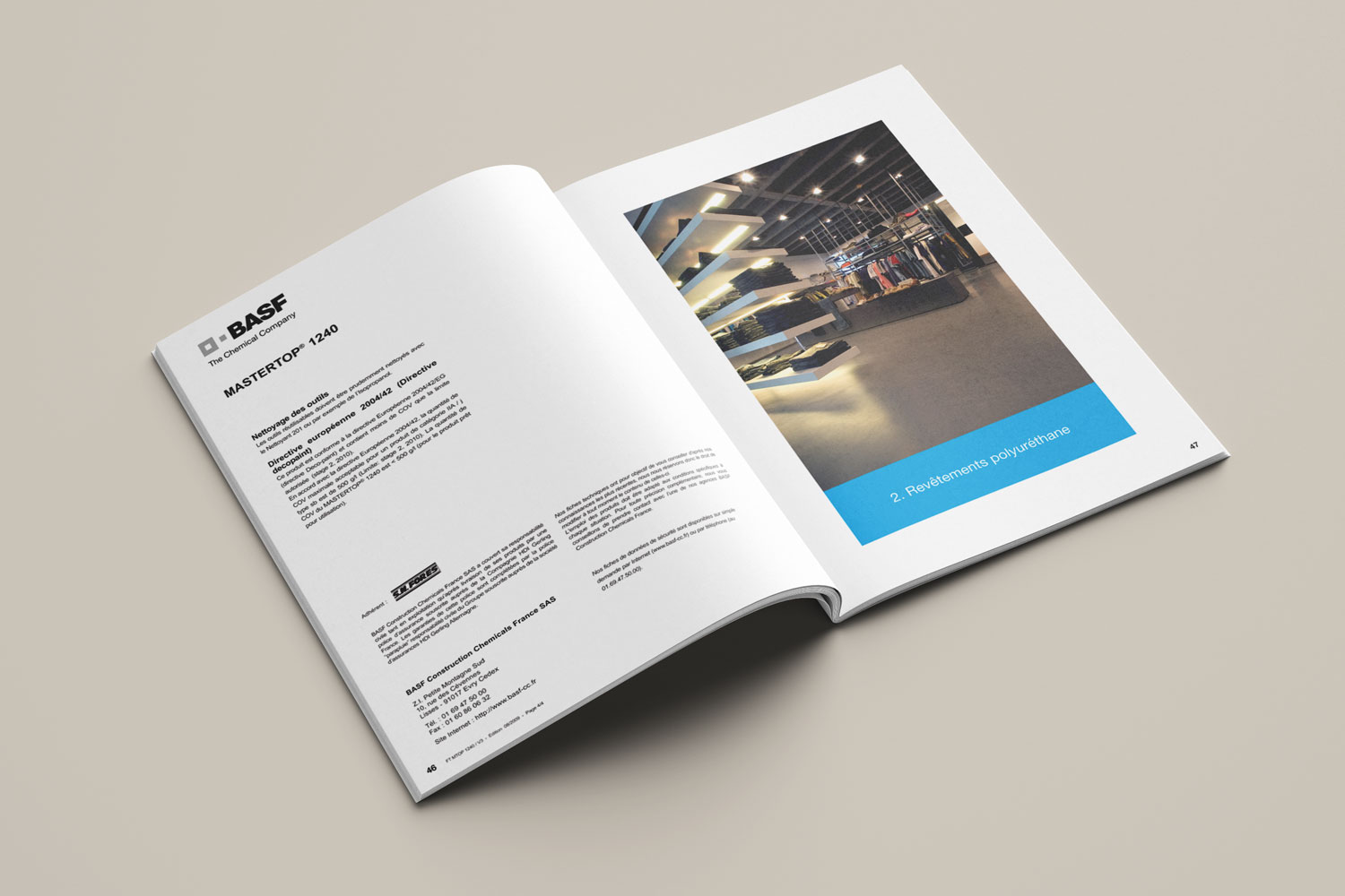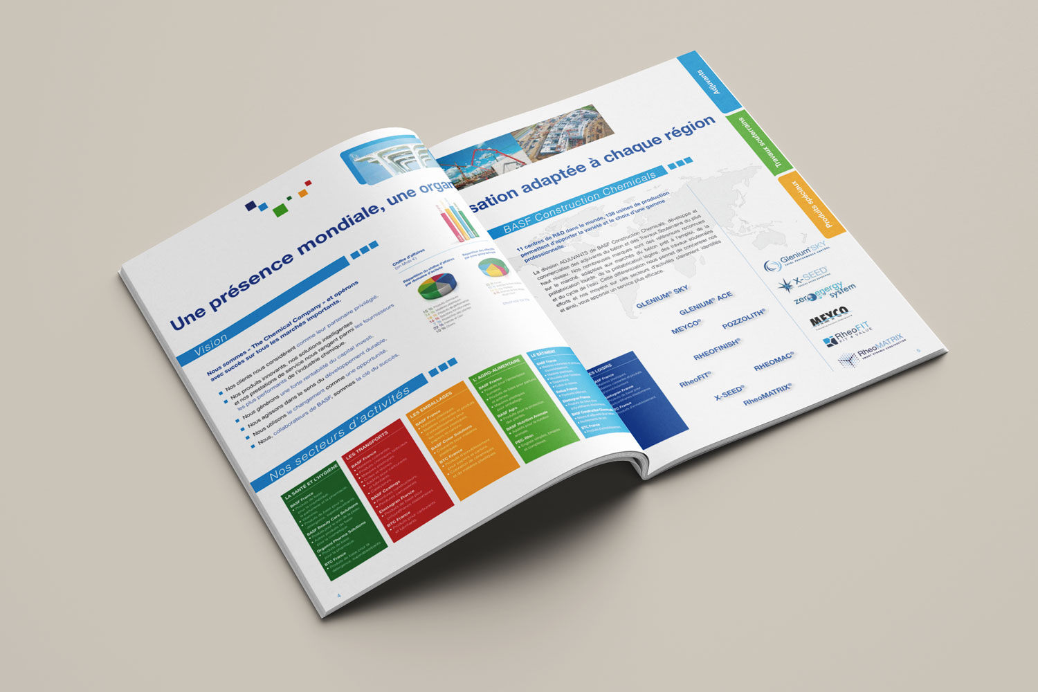 Modification de la brochure ‘’Chimie du Béton et de Travaux Souterrains’’ BASF : modification des tableaux, remplacement de visuels, retouche de visuels, modification de texte dans du dessin vectoriel. Éléments mis à disposition : dossier complet comprenant les fichiers natifs au format In Design, un dossier image et un dossier police.