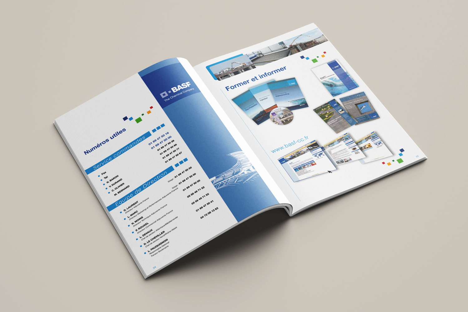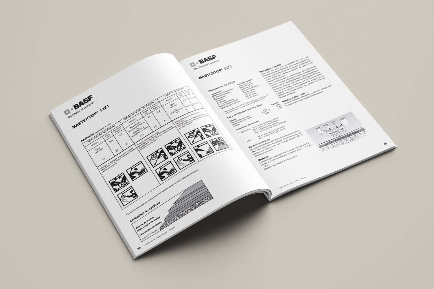 Réalisation du ‘’Recueil de fiches techniques’’ BASF : transformation des fiches PDF en .eps, réalisation de plusieurs tableaux, réalisation d’un sommaire alphabétique et thématique, retouche et recadrage de visuels, réalisation de la couverture.