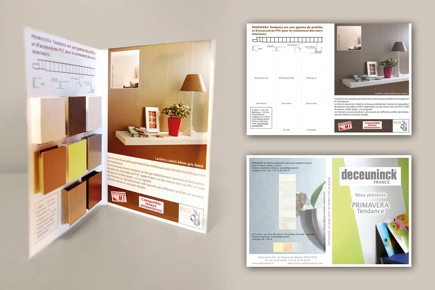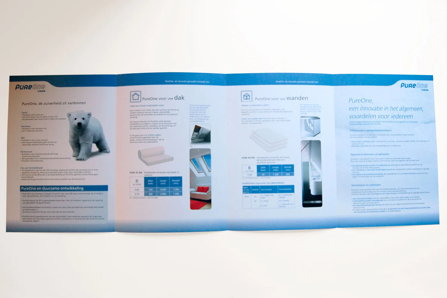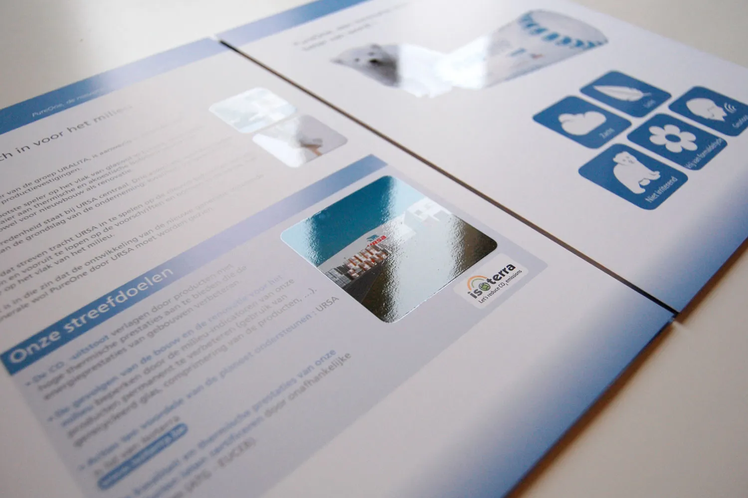 Création des plaquettes en 4 volets. Retouche de visuels, intégration de texte français et néerlandais, fichier pour vernis sélectifs.