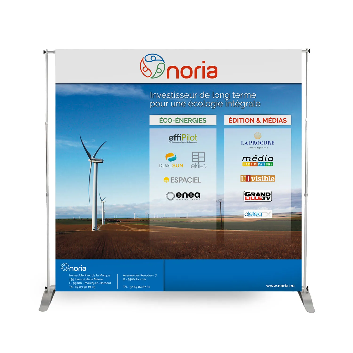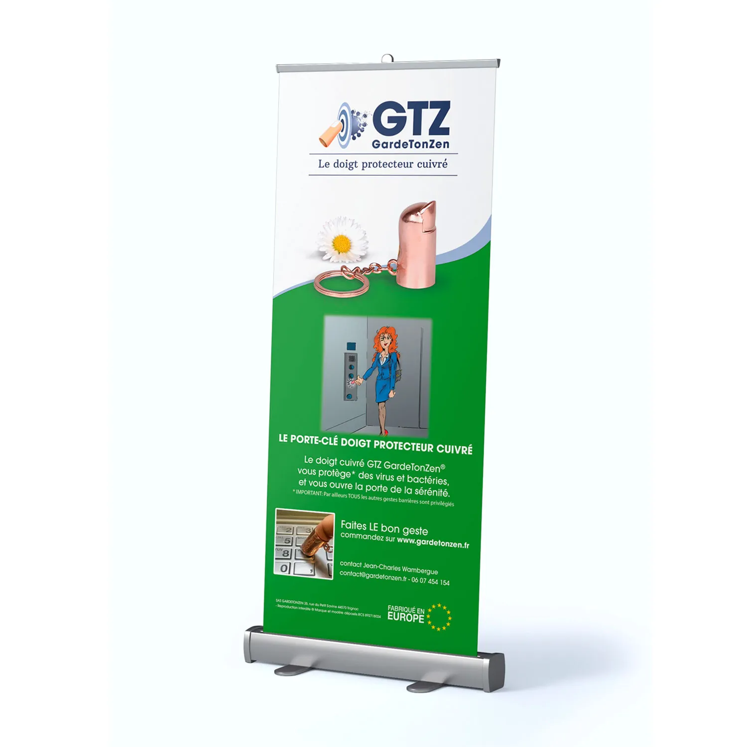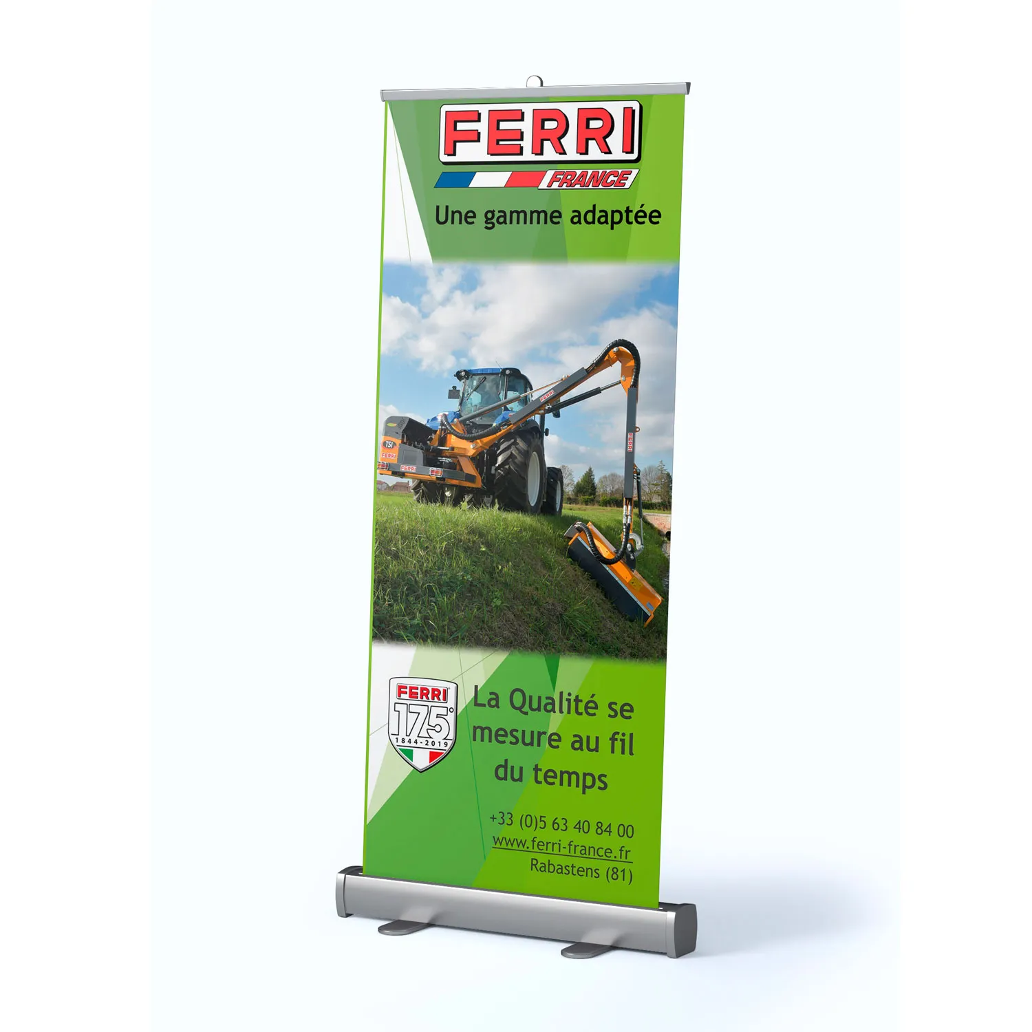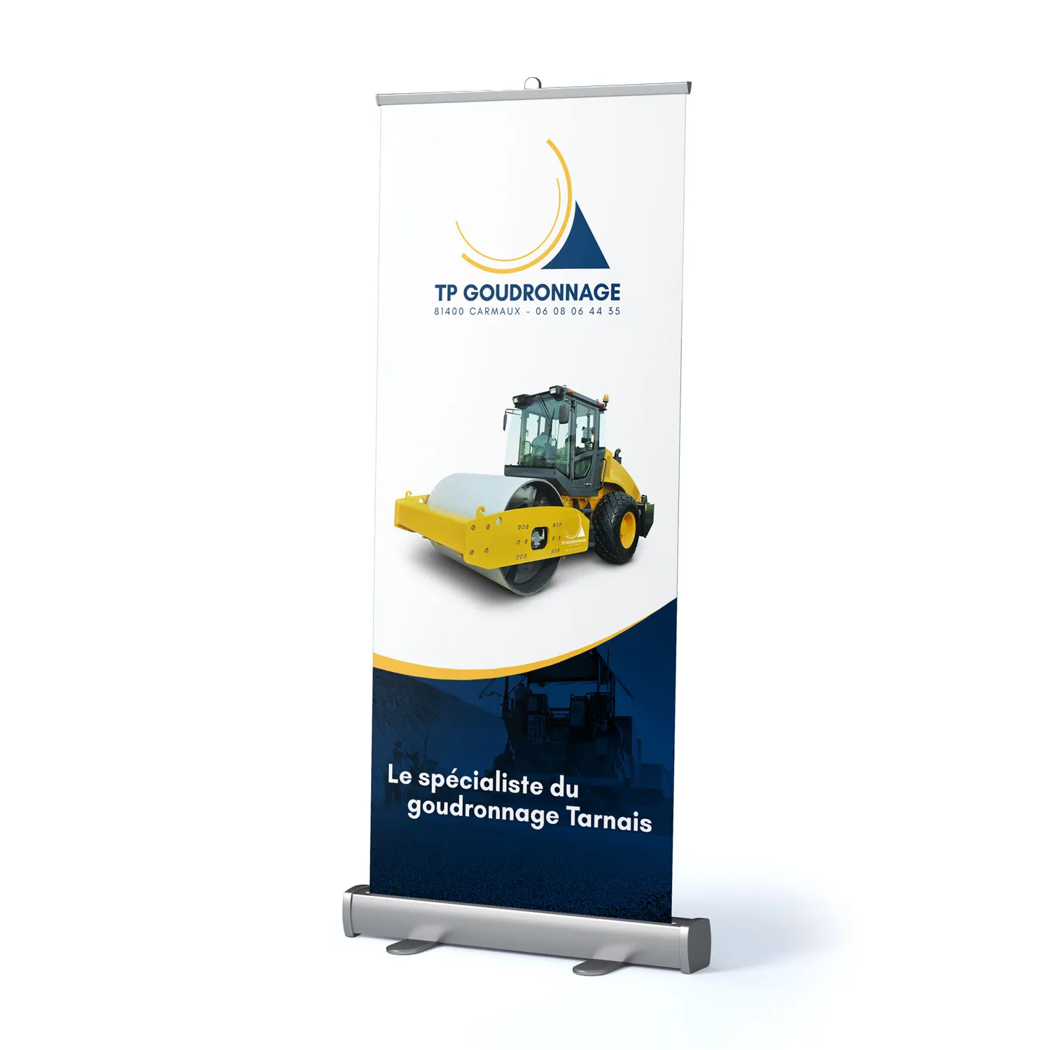 Support vertical léger et élégant, le kakémono est idéal pour afficher vos messages de manière visuelle et structurée. Facile à installer et à transporter, il habille vos salons, halls ou points d’accueil avec impact et clarté.