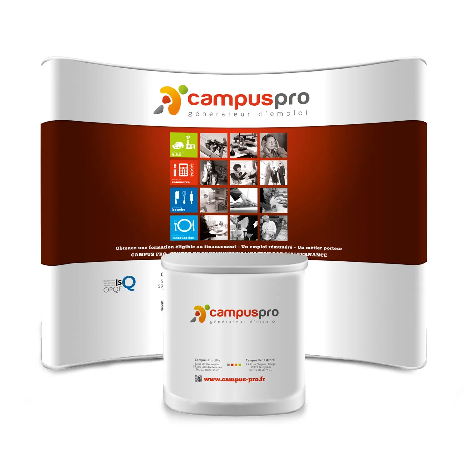 Conçu pour vos événements ou espaces de présentation, le stand personnalisé associe visibilité et ergonomie. Il met en scène vos visuels ou messages dans une structure valorisante, modulable et adaptée à chaque contexte.