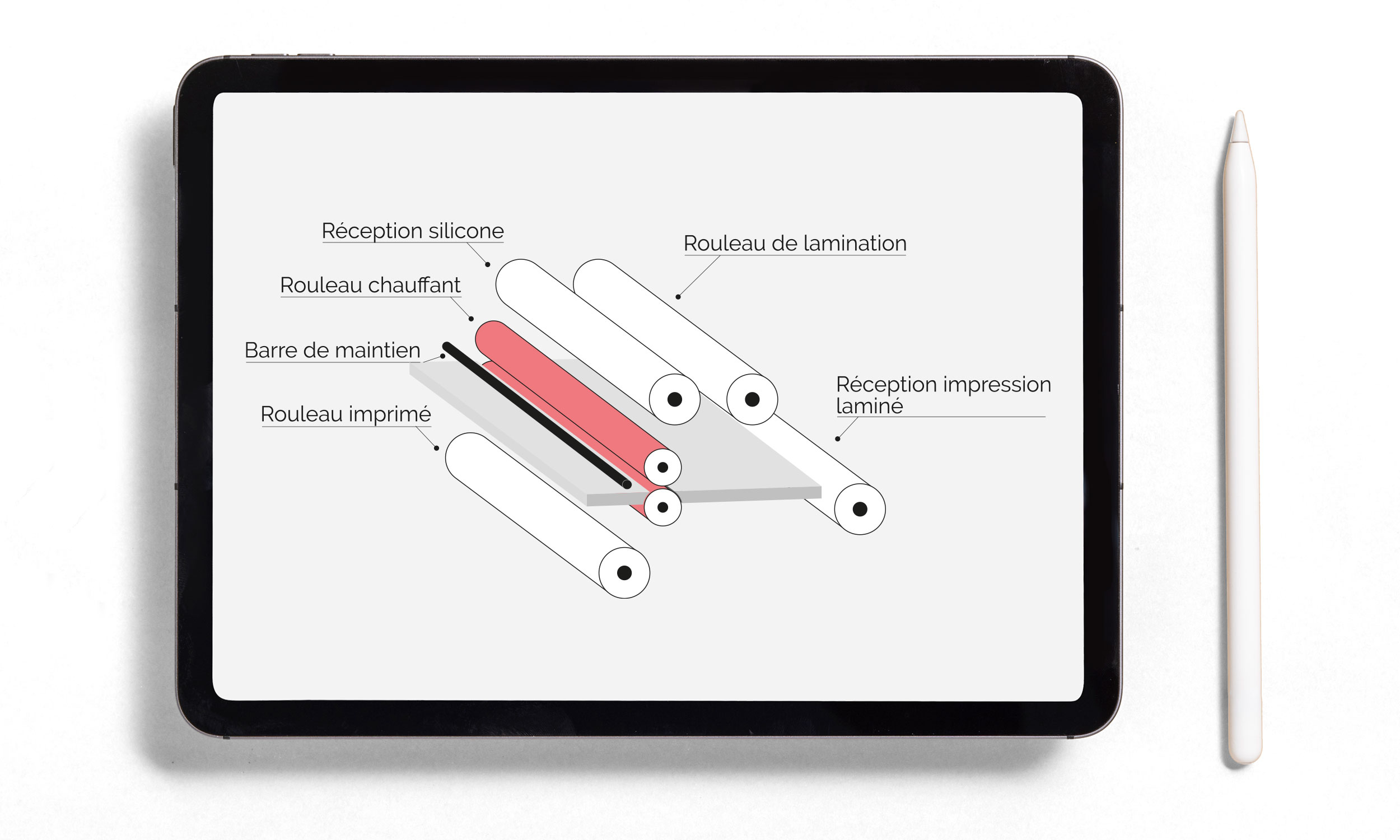 MISSION : Réalisation de dessins techniques d’interface écran SUMMA, de tableau de contrôle pour machine de lamination et explication fonctionnement de lamination pour des documents internes.