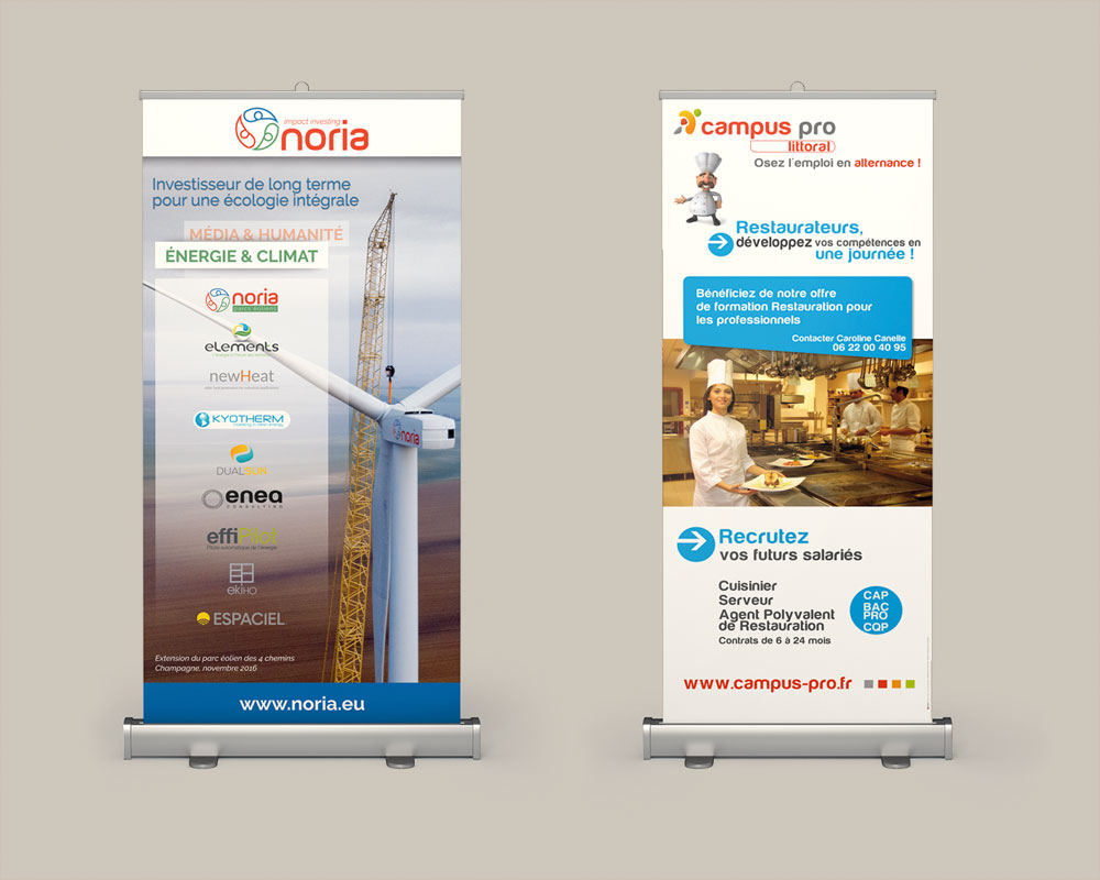 Habillez, guidez et structurez vos espaces professionnels ou événementiels grâce à une signalétique pensée pour l’usage quotidien : kakémonos, panneaux, stands, vitrines… Un accompagnement visuel clair et esthétique.