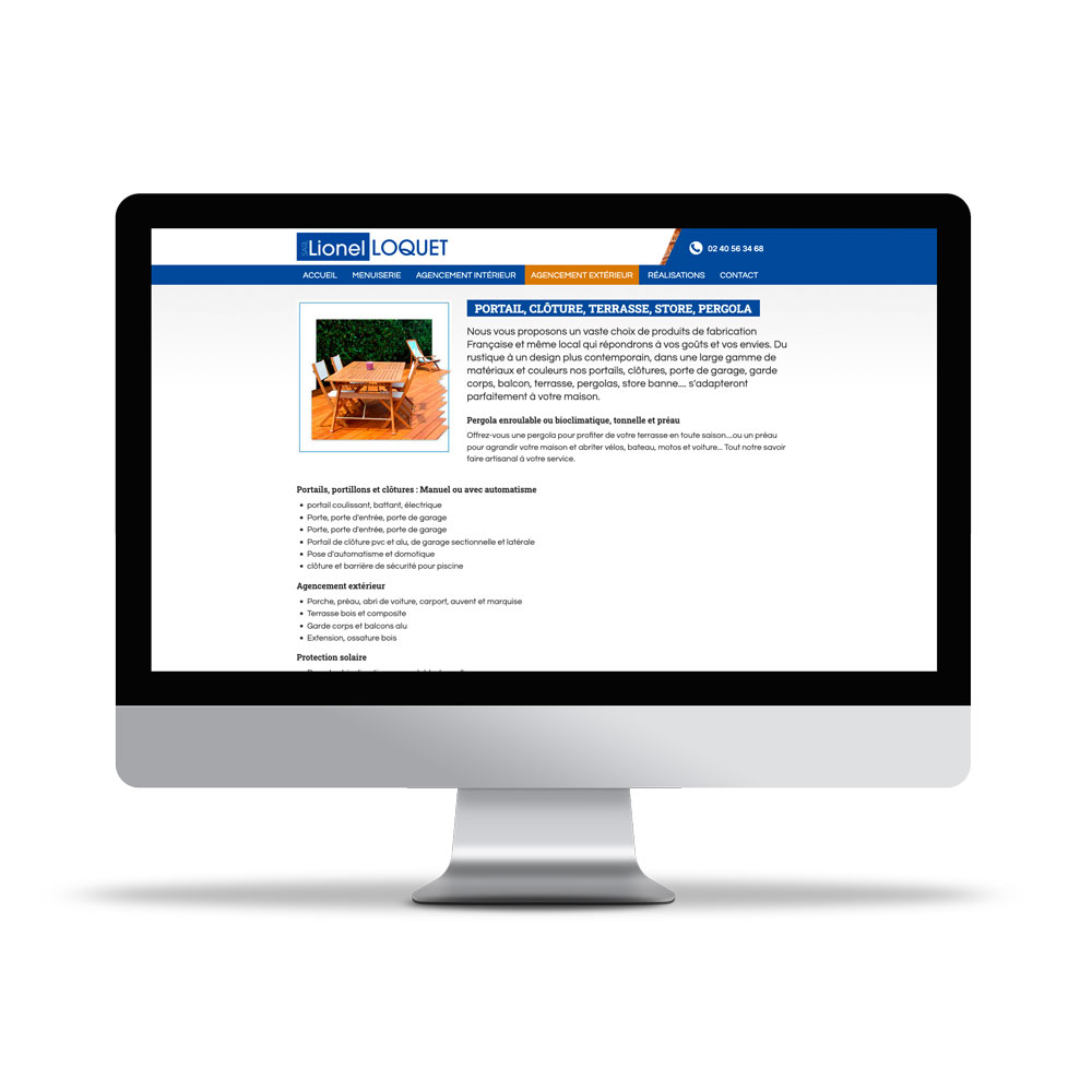 MISSION :Création du design du site Menuiserie Loquet, une entreprise offrant des services de menuiserie intérieure et extérieure. L'identité visuelle a été développée pour refléter la solidité et le savoir-faire traditionnel : palette de bois naturels, typographies classiques, mise en page équilibrée. Le site met en avant les différentes prestations, avec des galeries de réalisations et des descriptions détaillées. Le design vise à transmettre une image de fiabilité et de compétence, tout en assurant une navigation intuitive sur desktop comme sur mobile. Projet de réalisation avec Éric Debrosse (www.editprod.fr)